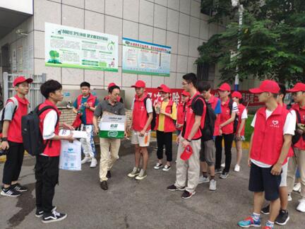 二公司管理人員為大學生分發飲用水