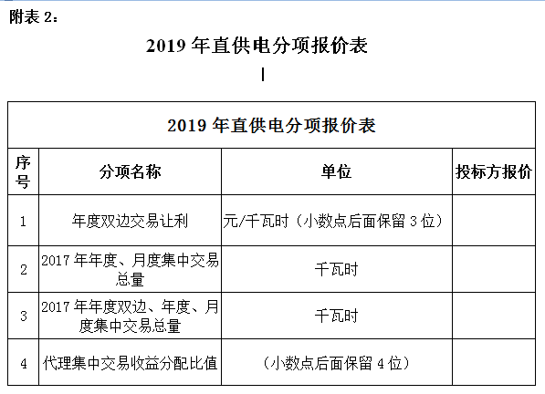 (備注:1、投標方所提供的2017年年度雙邊、年度、月度集中交易總量,必須為真實準確的數字,否則作廢標處理;